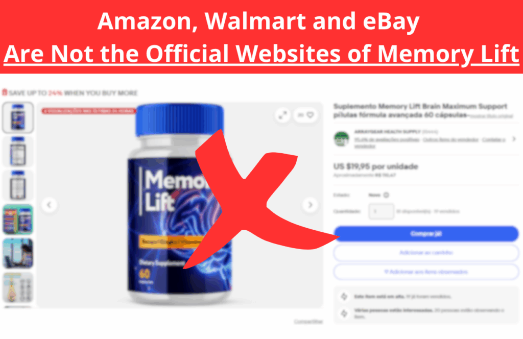 An important warning I need to share is about the number of people being deceived when buying MemoryLift. Many are choosing to purchase MemoryLift from retail stores like Amazon, Walmart, and eBay, attracted by lower prices, but end up receiving counterfeit bottles. I strongly recommend NOT BUYING MemoryLift from any of these retail stores, as these fake products contain completely different ingredients and do not provide the brain health benefits of the original formula. If you’re interested in purchasing MemoryLift, I highly recommend using ONLY THE OFFICIAL WEBSITE to ensure you receive the genuine product.